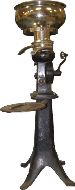 These are 2 styles of cream separators. The cream separator on the right is operated by cranking the handle. Once the machine is up to speed fresh milk is poured in the top. The spinning motion quickly separates the lighter cream from the heavier milk.